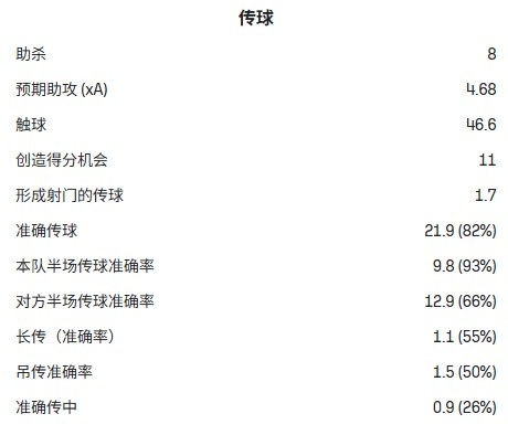 特别是近两个赛季,他的组织能力更加突出。上赛季,埃泽在31次出场中场均贡献1.7次关键传球(队内第1,联赛第7)、11次创造绝佳机会(队内第2,联赛第7)、场均1.8次过人(队内第1,联赛第2),8球8助的表现已足够出色。若算上“倒数第二传”和策动,水晶宫58.8%的进球与他相关,足见其价值。
